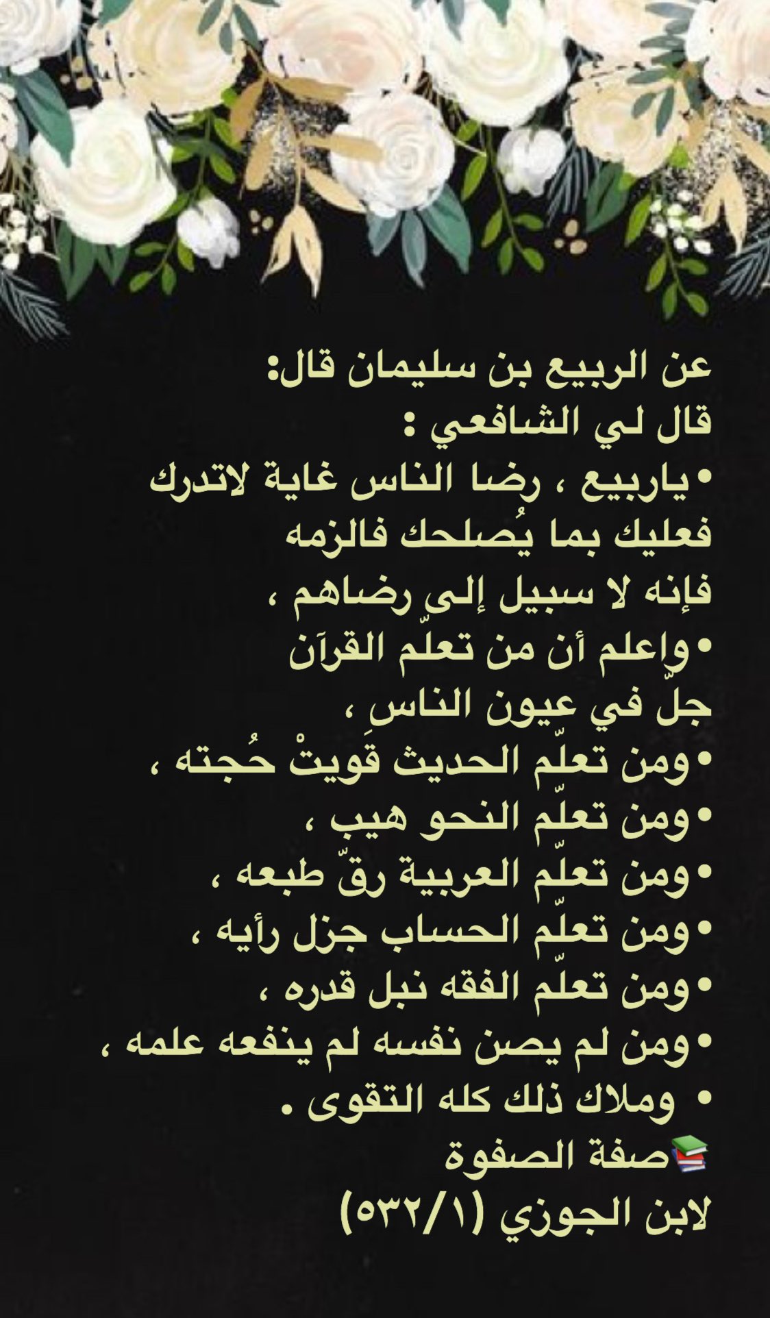 من أقوال الإمام الشافعي في فوائد العلوم حفظ التراث الإسلامي Facebook